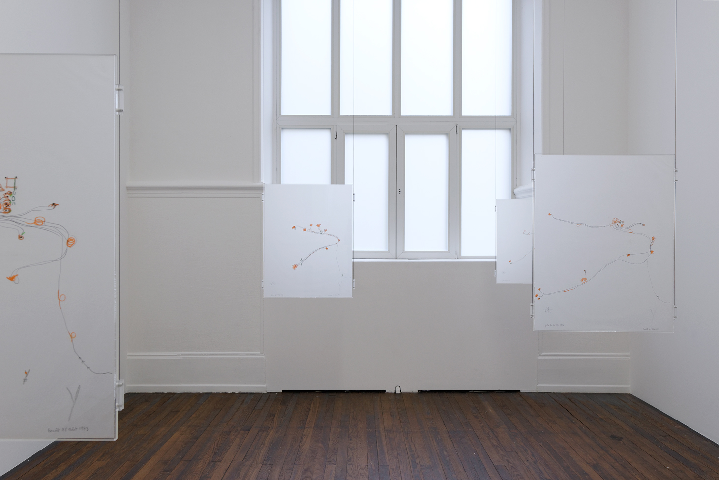 What goes on in an exhibition? What goes on between its inhabitants? Between the artists, the works, the curators, the carers, and the visitors with their myriad language registers? How to avoid crushing its developing, invisible relationships? How to avoid ploughing blindly through an exhibition? How to enter the field of vision of the works? How to live outside of language?