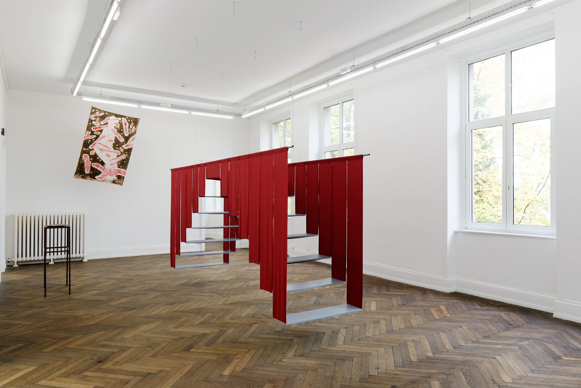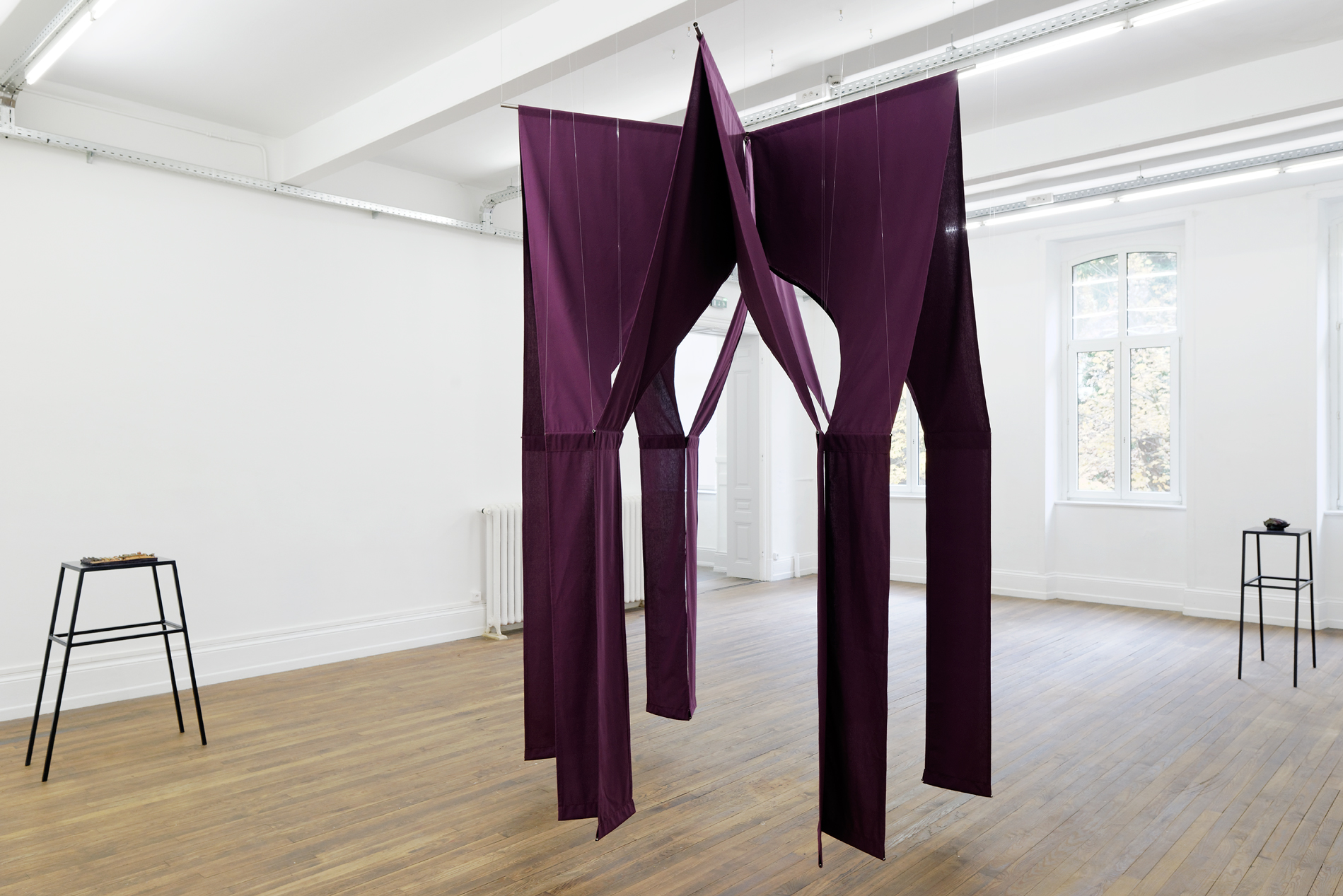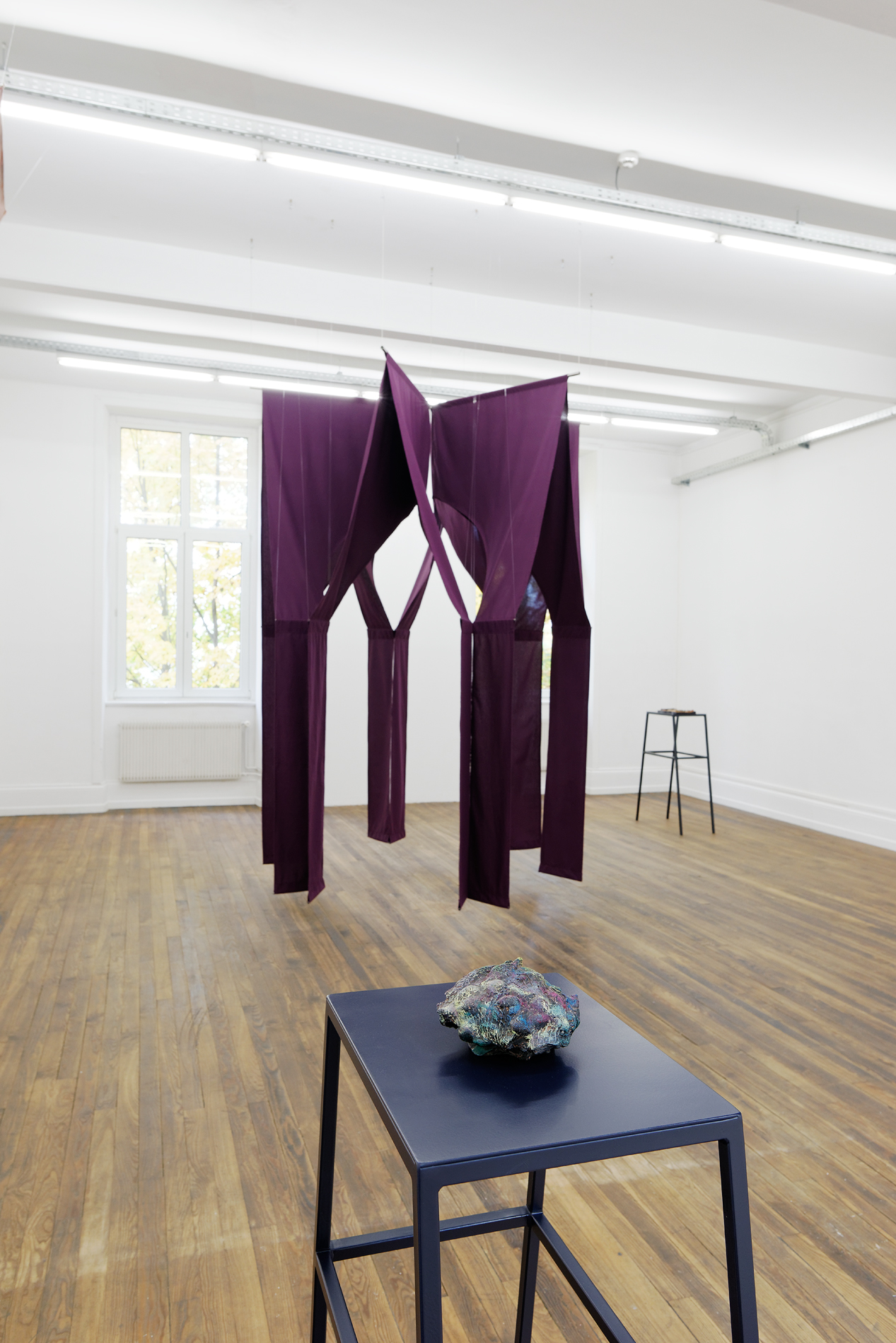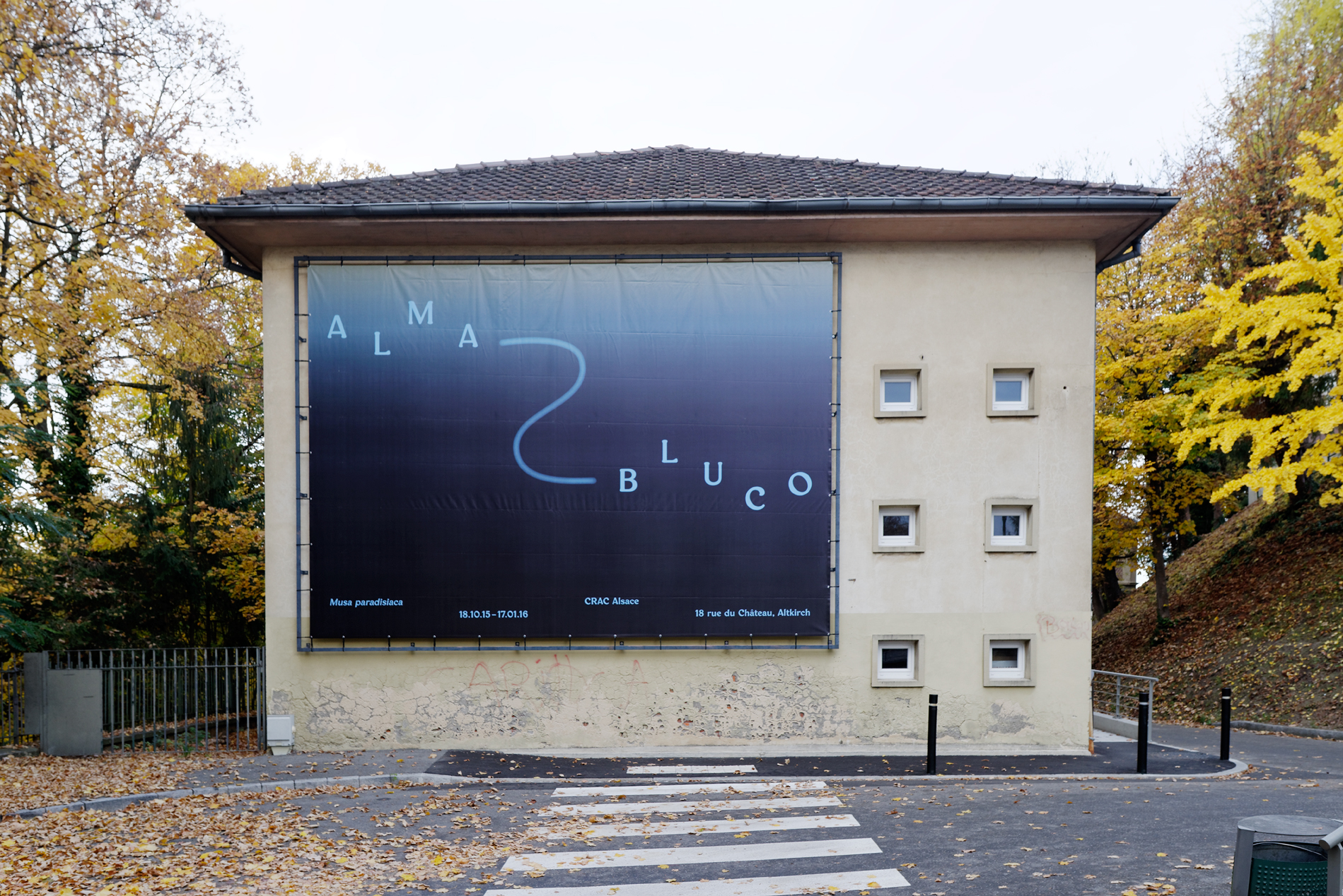 The exhibition Alma-Bluco – "Raw Soul" – takes place at the junction of these observations and experiences, on the cusp between night and day. And CRAC Alsace, which has taken it under its roof, becomes the locus of apparition and transformation of the hybrid bodies of the Singer, Colina, Francisco, Nuna and Poppe, all of them – "Freebooter foreigner underdog bungler thief"** – sphinxes trapped between two worlds.