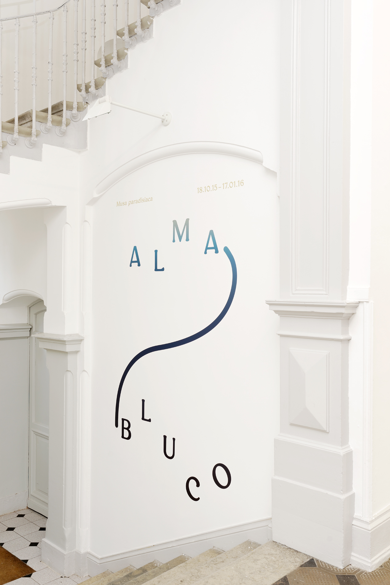 This is what springs to mind every time I get ready to talk about Alma-Bluco, a Musa paradisiaca solo exhibition: a masking sentence, an enigmatic injunction, almost a spell, which so totally informs the genesis and the contours of this exhibition that it leaves room for not a single other word.
