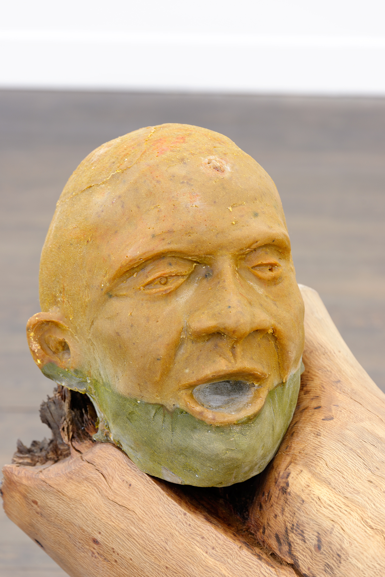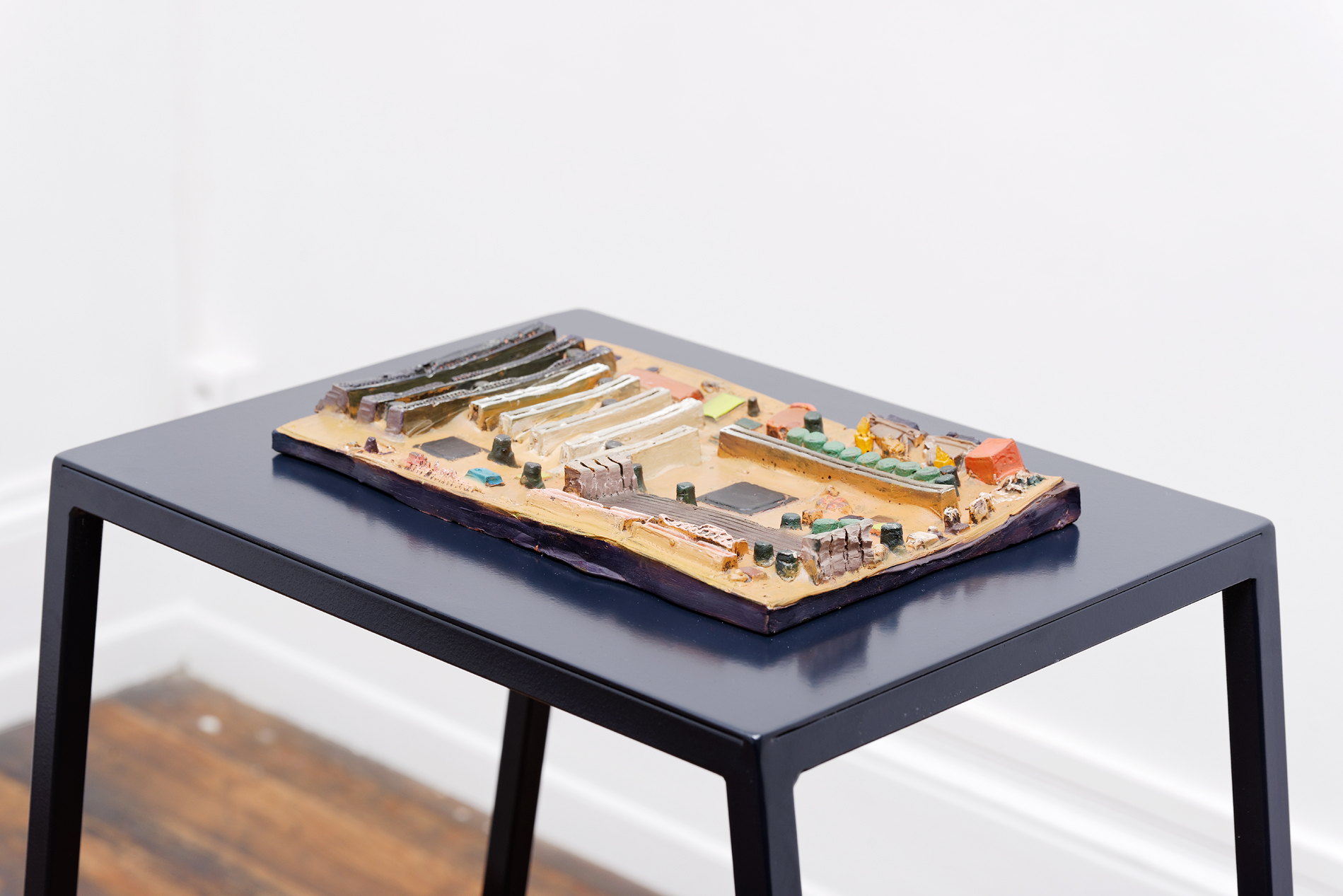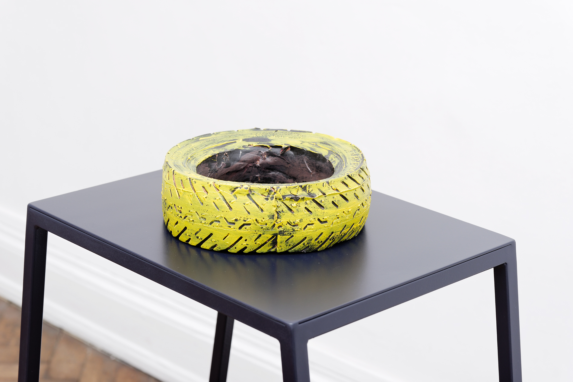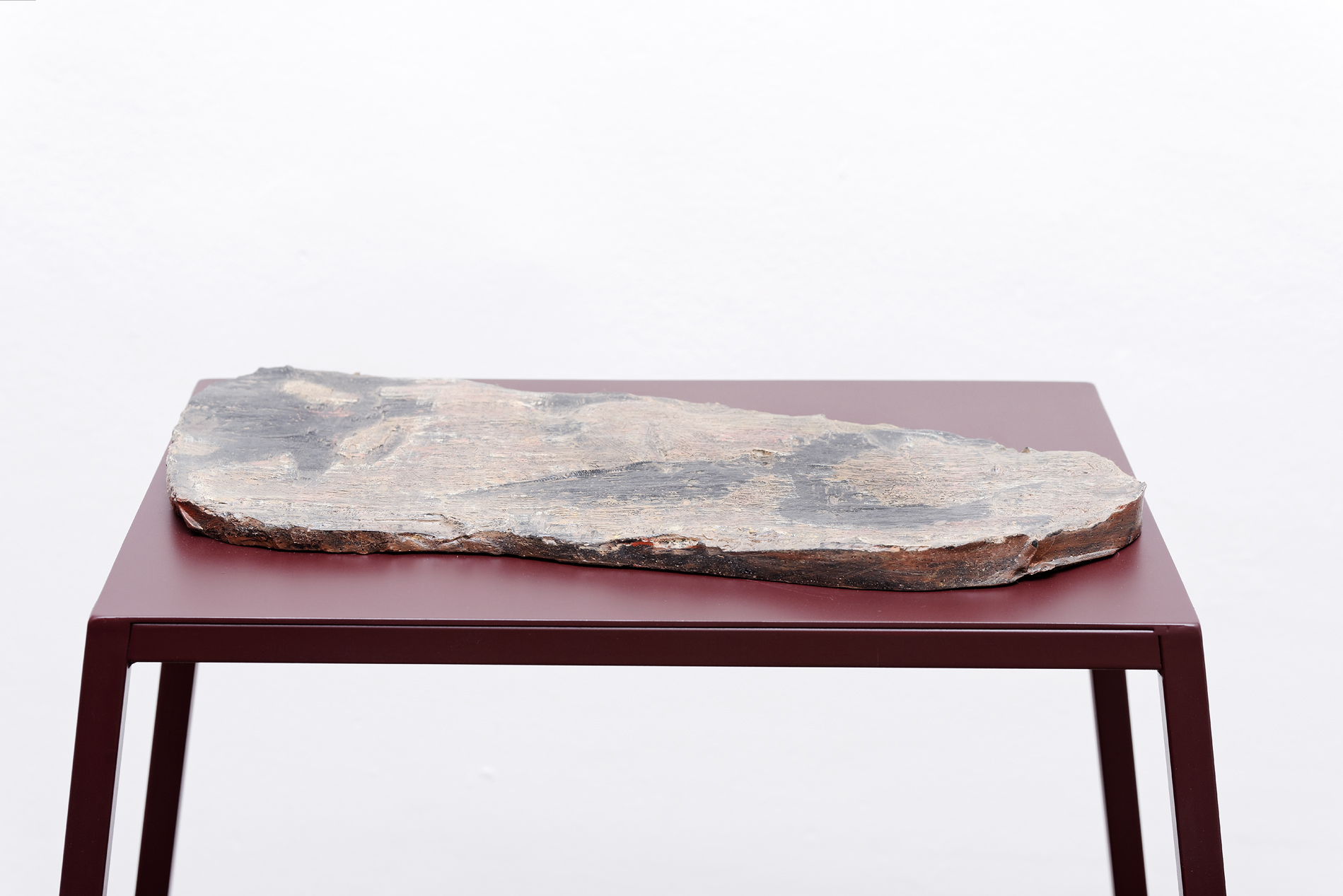 Last year at CRAC Alsace Musa paradisiaca presented Ecstasy & Eden, a 16 mm film that observes and ventriloquises the awakening and the vital energy of this machine, accompanying it with a group of pitch sculptures. In this work Eduardo and Miguel pin down the intense connection between the man and the machine – a kind of giant, slumbering beast that dreams together with Francisco as he rests beside it and keeps it warm.