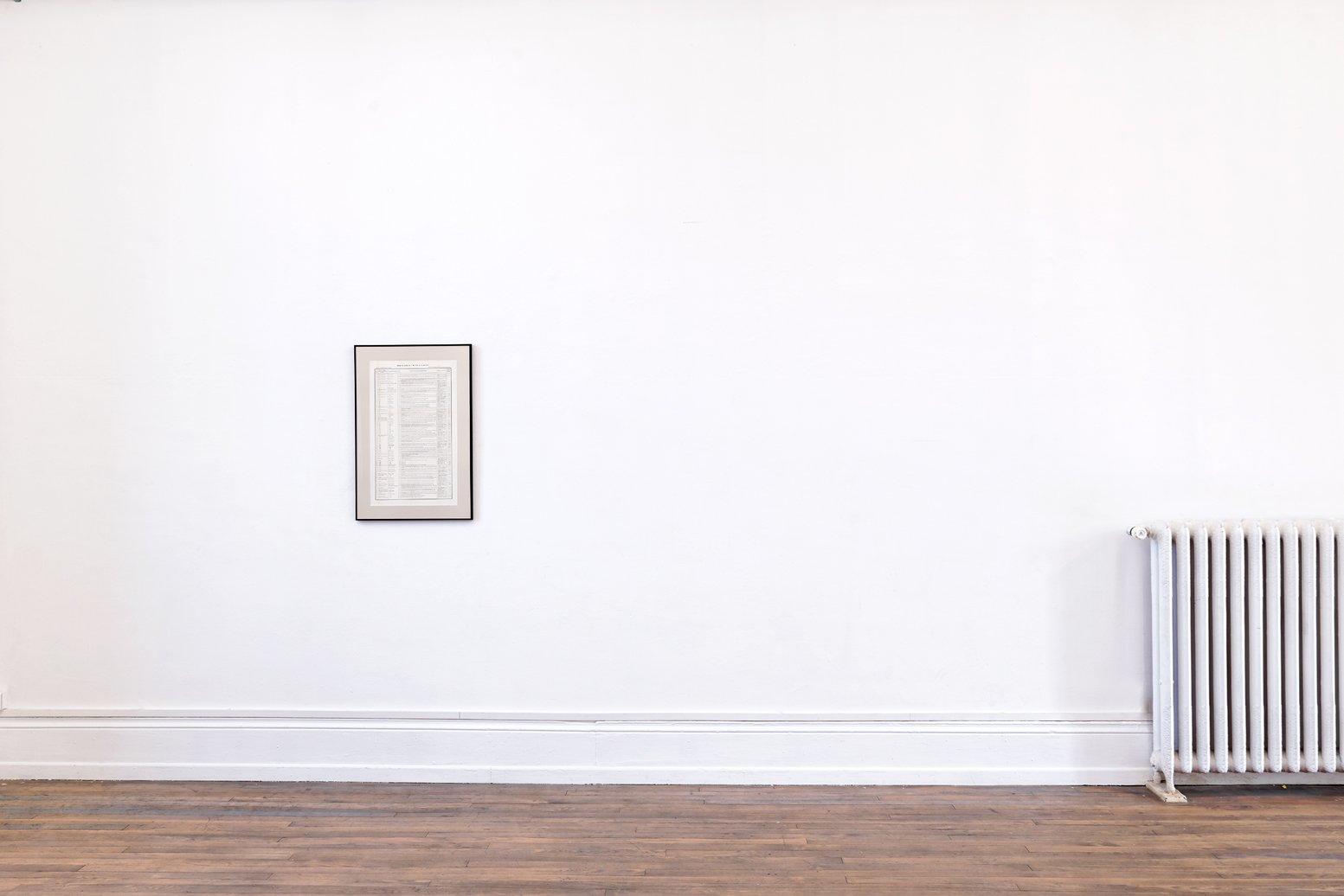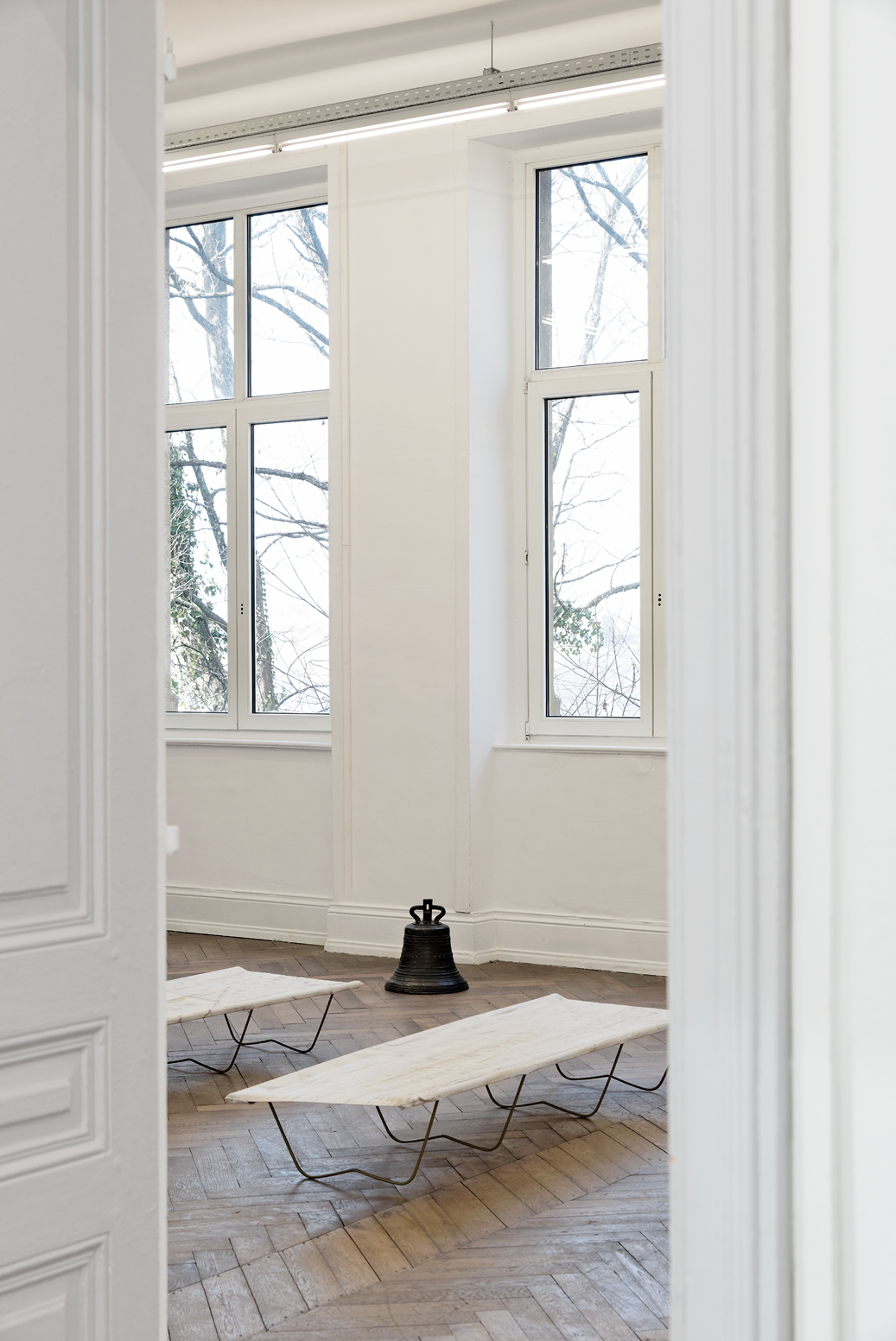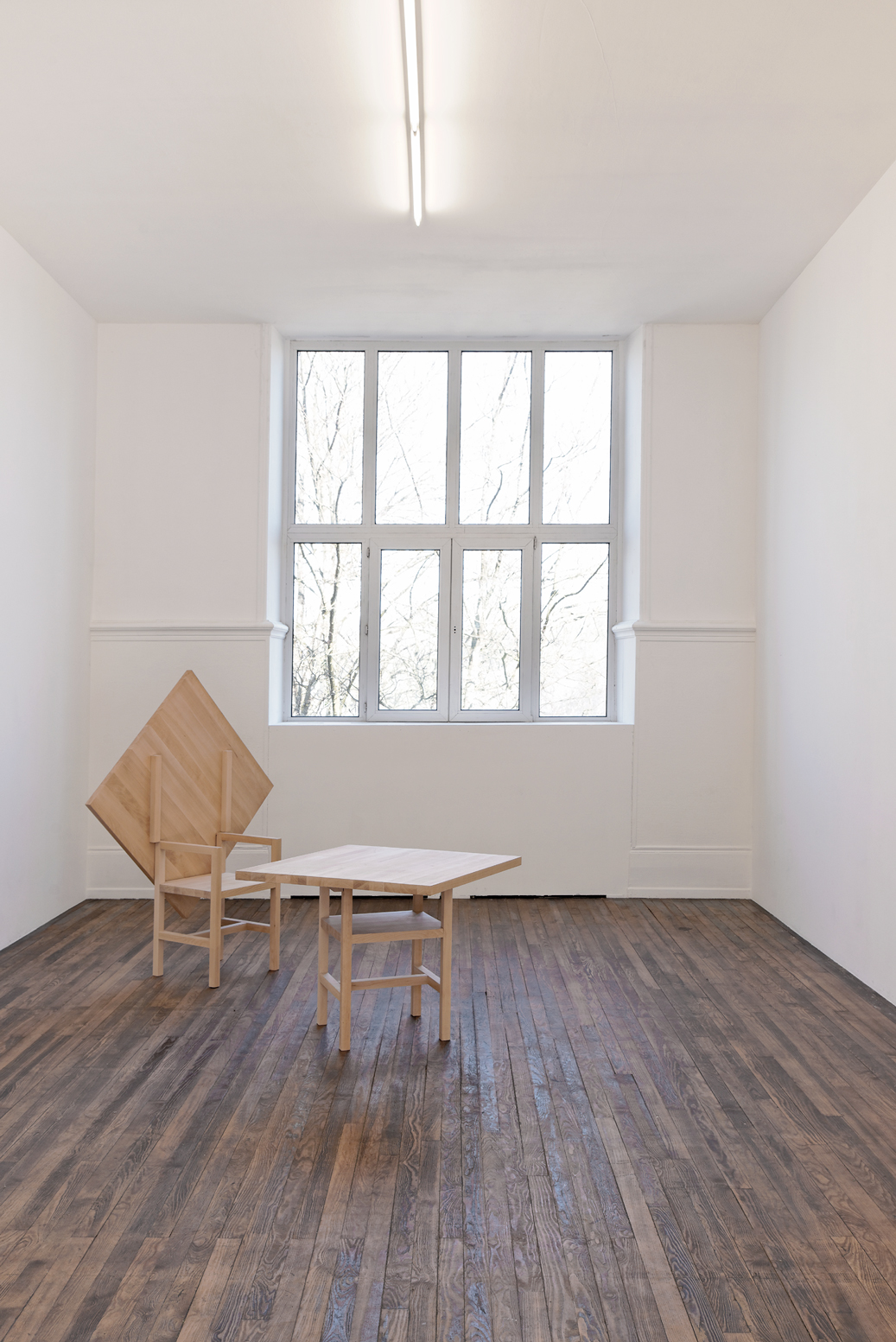Ein Tisch ohne Brot ist ein Brett, ein Tisch ohne Brot ist ein Brett, ein Tisch ohne Brot ist ein Brett, ein Tisch ohne Brot ist ein Brett… here I am endlessly repeating this sentence which is the title of this solo show of Sophie Nys, as if the better to grasp its mechanics and substance. For this statement, which not only acts as an image, informs both the challenges of Sophie Nys’ work in general and the preoccupations at work in this exhibition in particular. Ein Tisch ohne Brot ist ein Brett, which literally means “a table without bread is a board”, is the adaptation of a Russian saying which deals with both the object in its simplest material apparatus and the history it raises. Ein Tisch ohne Brot ist ein Brett, and, you see, the words are pleasant to utter, is therefore this relentless conceptual game, at once economical and rudimentary, which addresses a whole swathe of history, that of bread and its absence, and by extension the history of the crises and famines that have traversed Europe.