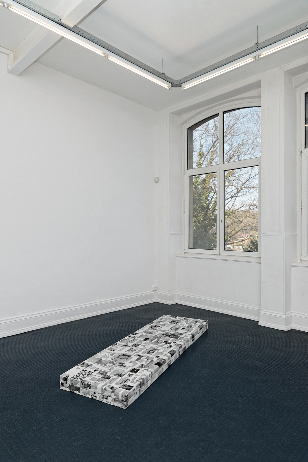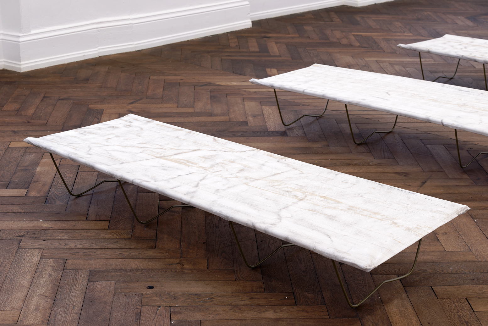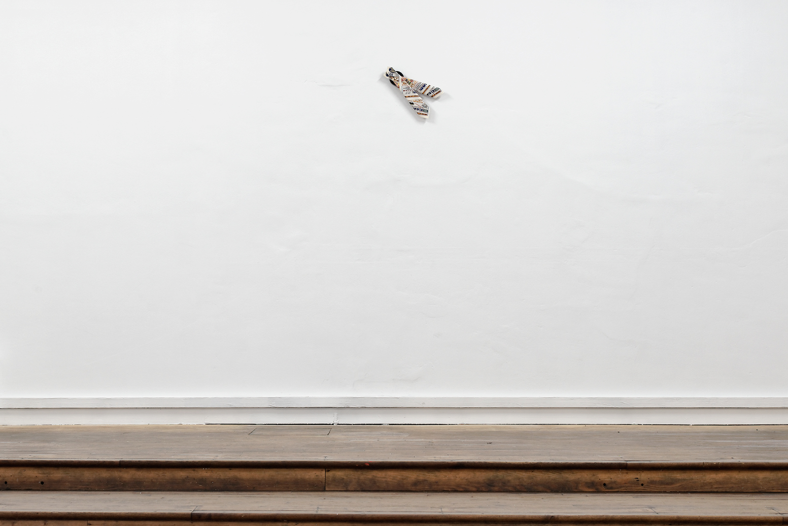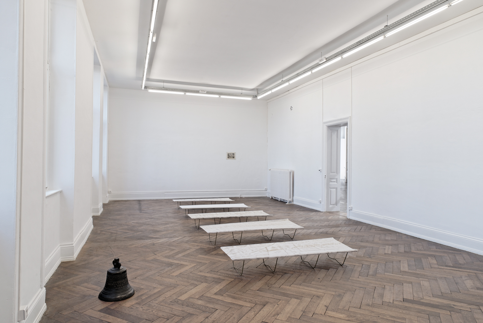 Ein Tisch ohne Brot ist ein Brett, ein Tisch ohne Brot ist ein Brett, ein Tisch ohne Brot ist ein Brett, ein Tisch ohne Brot ist ein Brett… here I am endlessly repeating this sentence which is the title of this solo show of Sophie Nys, as if the better to grasp its mechanics and substance. For this statement, which not only acts as an image, informs both the challenges of Sophie Nys’ work in general and the preoccupations at work in this exhibition in particular. Ein Tisch ohne Brot ist ein Brett, which literally means “a table without bread is a board”, is the adaptation of a Russian saying which deals with both the object in its simplest material apparatus and the history it raises. Ein Tisch ohne Brot ist ein Brett, and, you see, the words are pleasant to utter, is therefore this relentless conceptual game, at once economical and rudimentary, which addresses a whole swathe of history, that of bread and its absence, and by extension the history of the crises and famines that have traversed Europe.