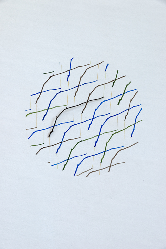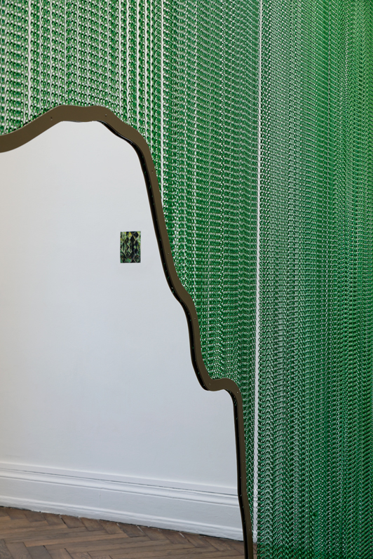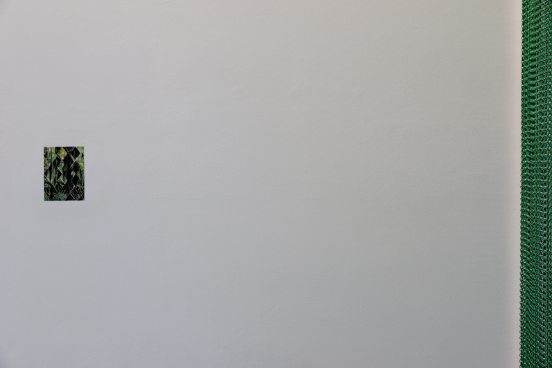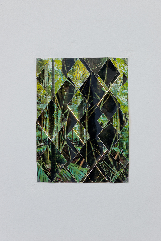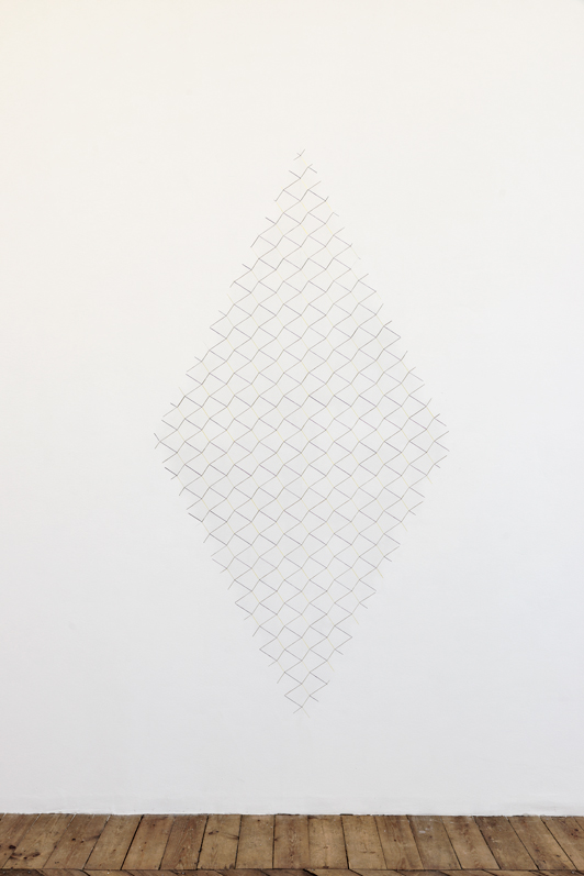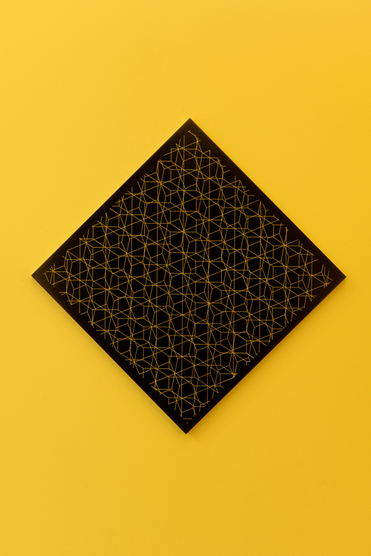 Animal que no existeix superpose différentes strates de relations et de ramifications. Des grilles géométriques, et au cœur de ces grilles, un losange. Une combinaison de chevrons qui peut se multiplier à l’infini. Un élément structurant les motifs abstraits des « peuples à dessin » d’Amazonie qui renverrait au mythe du Grand Anaconda - serpent chevronné qui aurait appris aux indiens à tisser et dessiner.