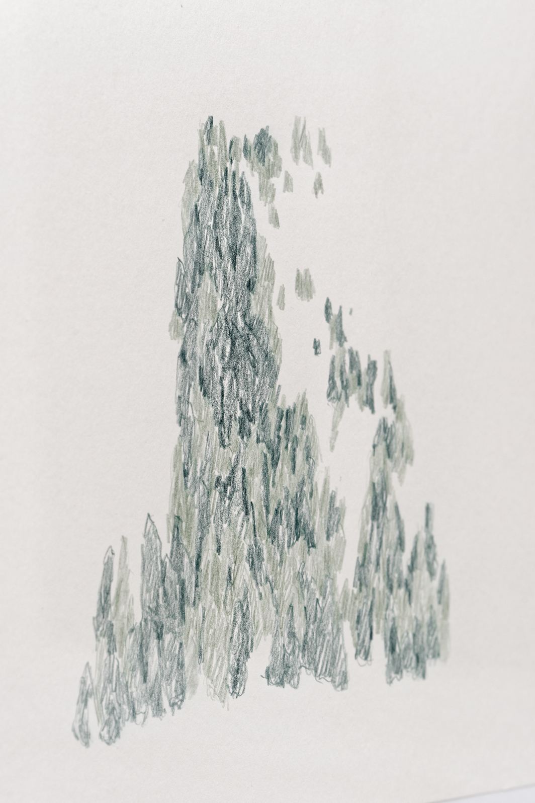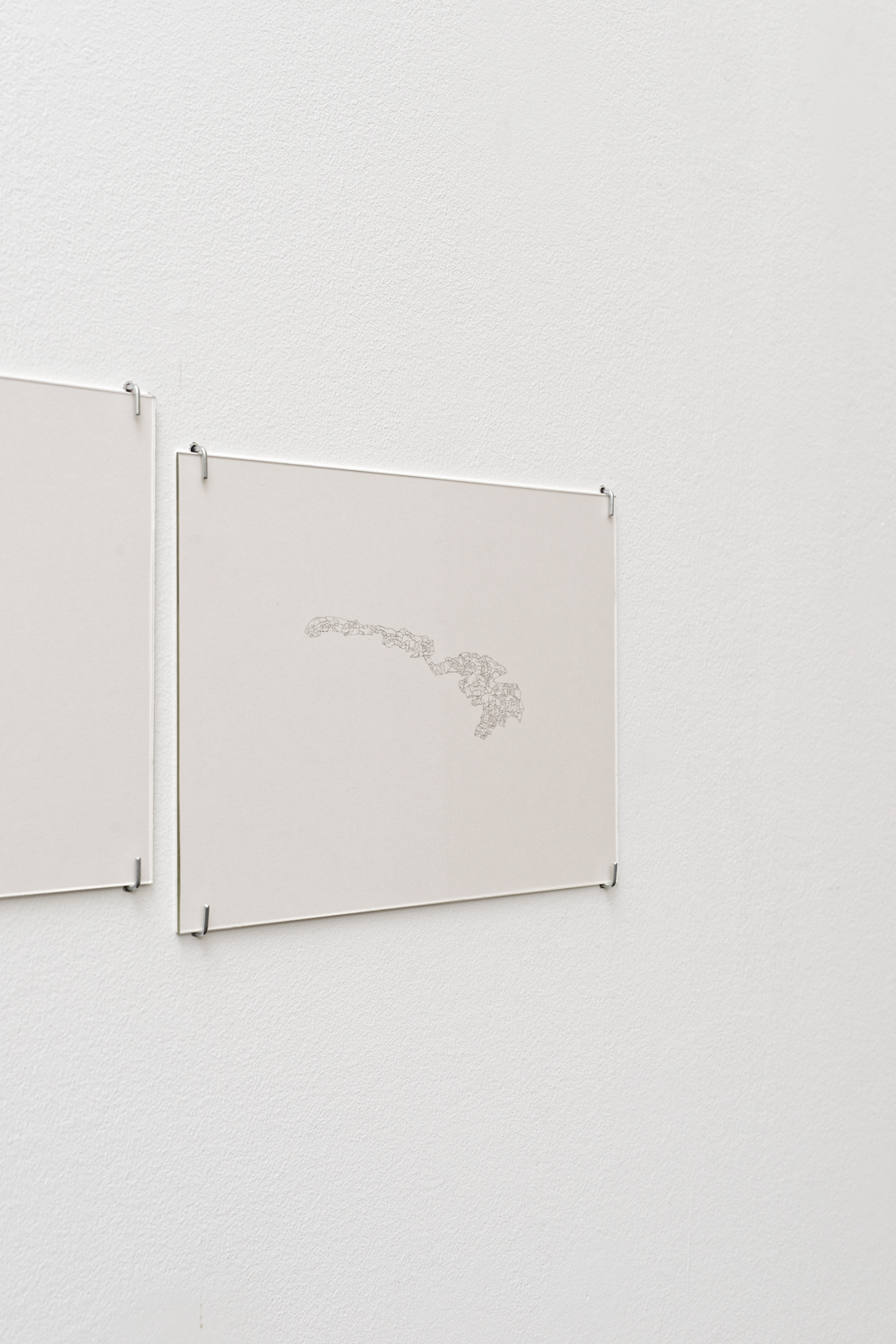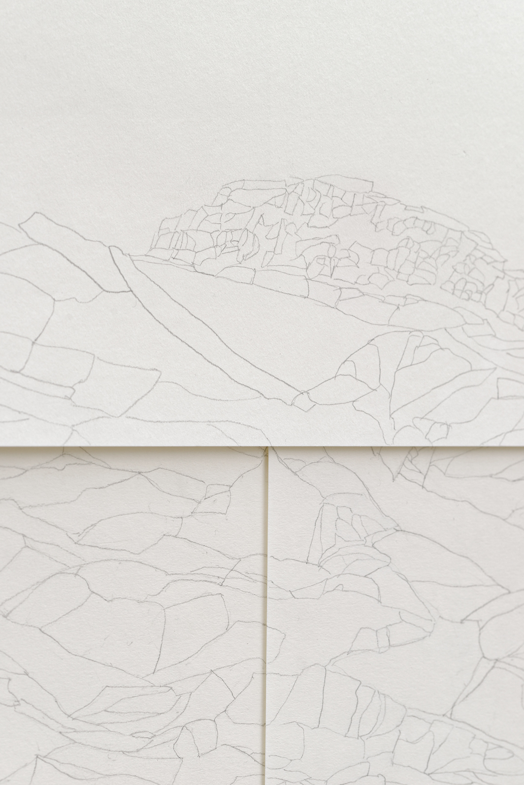 Les connaissances partagées avec ces spécialistes donnent à Kopelman la possibilité d’accéder à ce paysage en tant qu’artiste, de savoir que dessiner dans un lieu qui a été étudié et exploré de fond en comble, traversé par la civilisation et représenté de toutes les façons possibles. Qu’est-ce qu’une artiste peut apporter de significatif dans un environnement comme celui-ci ? Les marches, les conversations et les expériences en montagne fonctionnent comme des points d’accès à un grand laboratoire en plein air qui lui permet d’envisager une méthodologie concrète. Une méthodologie qui l’amène à observer avec attention des éléments isolés du paysage, différents conglomérats atomisés qui révèlent autant la complexité de celui-ci que le processus de travail qui s’y est déroulé. Les lignes cherchant à reproduire les lichens, la moraine, les formes du glacier, la tension entre la glace et la roche, ou les diverses espèces d’arbres sur les coteaux deviennent ainsi les témoins d’une histoire qui révèle des aspects naturels, sociaux ou politiques, définissant ce lieu en particulier, mais renvoyant également à bien d’autres.