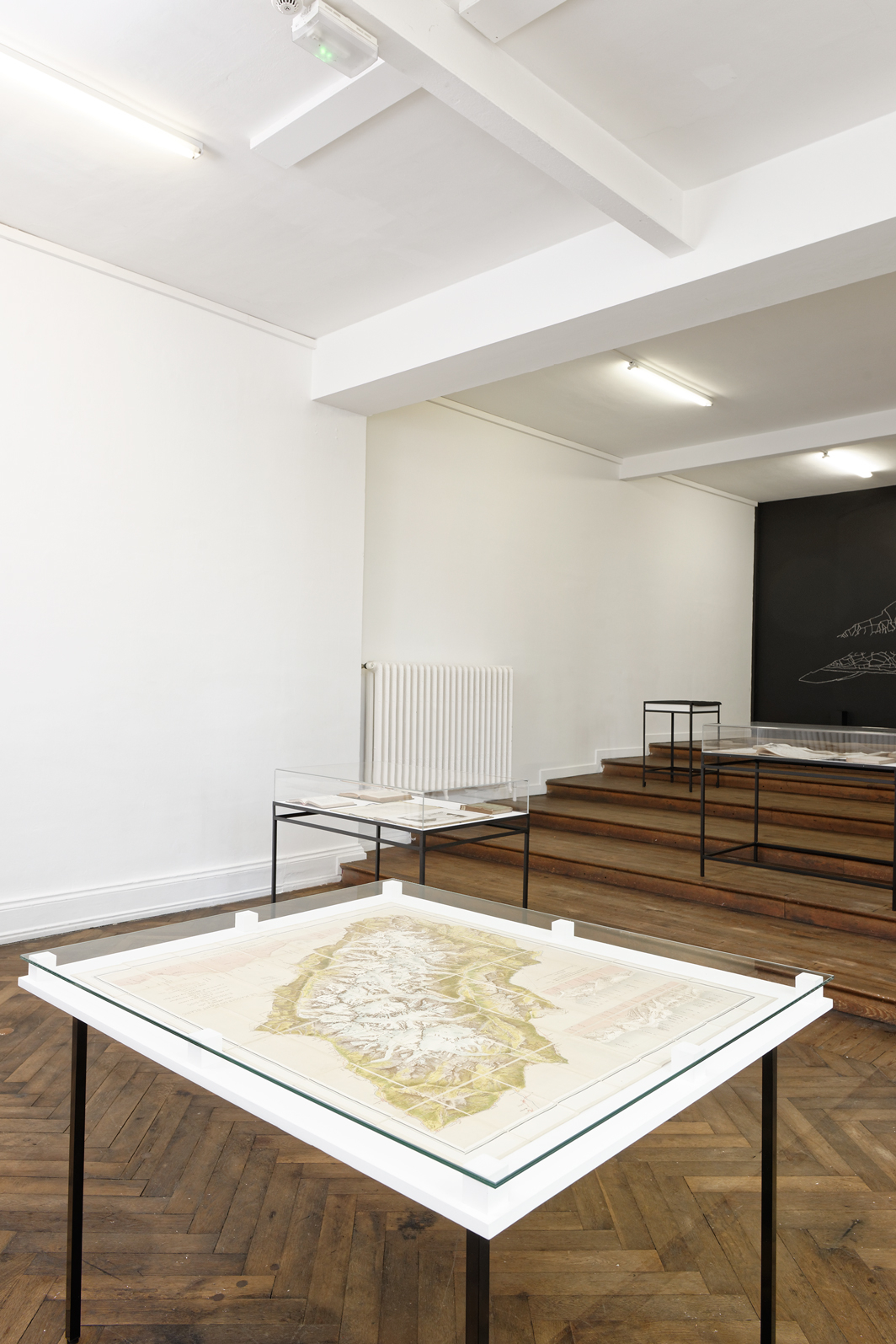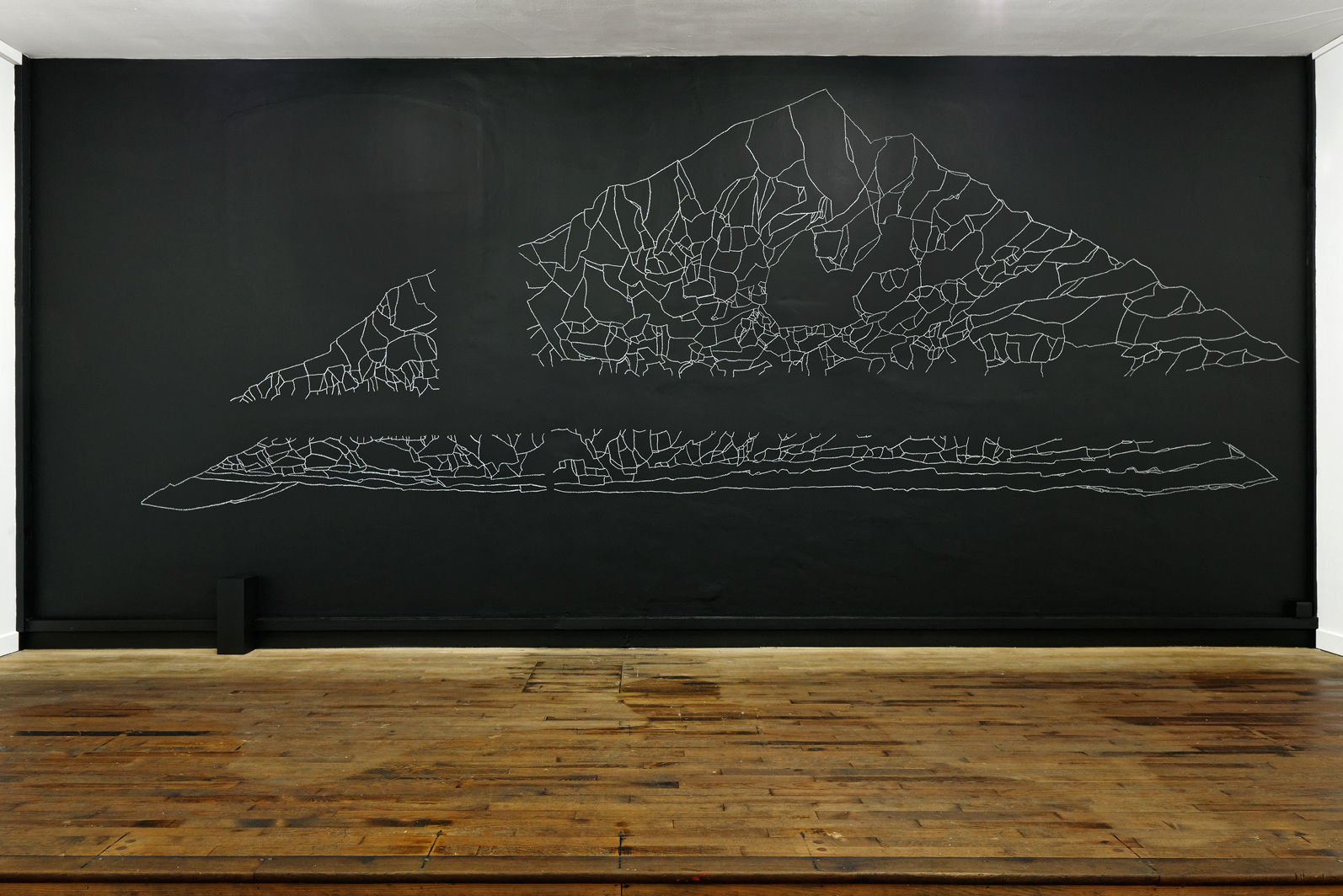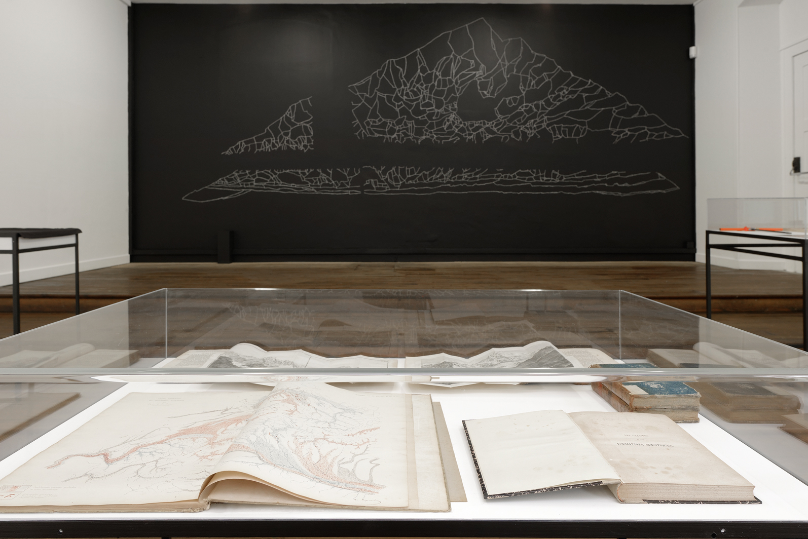 Si le dessin fait ici le lien entre la montagne et l’humain, diluant la séparation entre culture et nature, l’exposition constitue au moins un des dispositifs qui va le rendre public. Nous nous demandons alors, en tant qu’artiste et commissaire, comment penser la présentation d’une œuvre où le temps, la climatologie, le processus de travail, le dialogue et le contexte ont un poids si spécifique, mais aussi quelle peut être la relation entre ce processus de recherche et de production en montagne, et la méthode pour concevoir un espace d’exposition qui permette de communiquer le travail au public. Au moment de concevoir et d’articuler l’exposition, nous avons donc tenté de déplacer certaines des préoccupations inhérentes à ce projet en particulier – et à la pratique artistique d’Irene Kopelman en général – au sein de notre processus de travail commun.