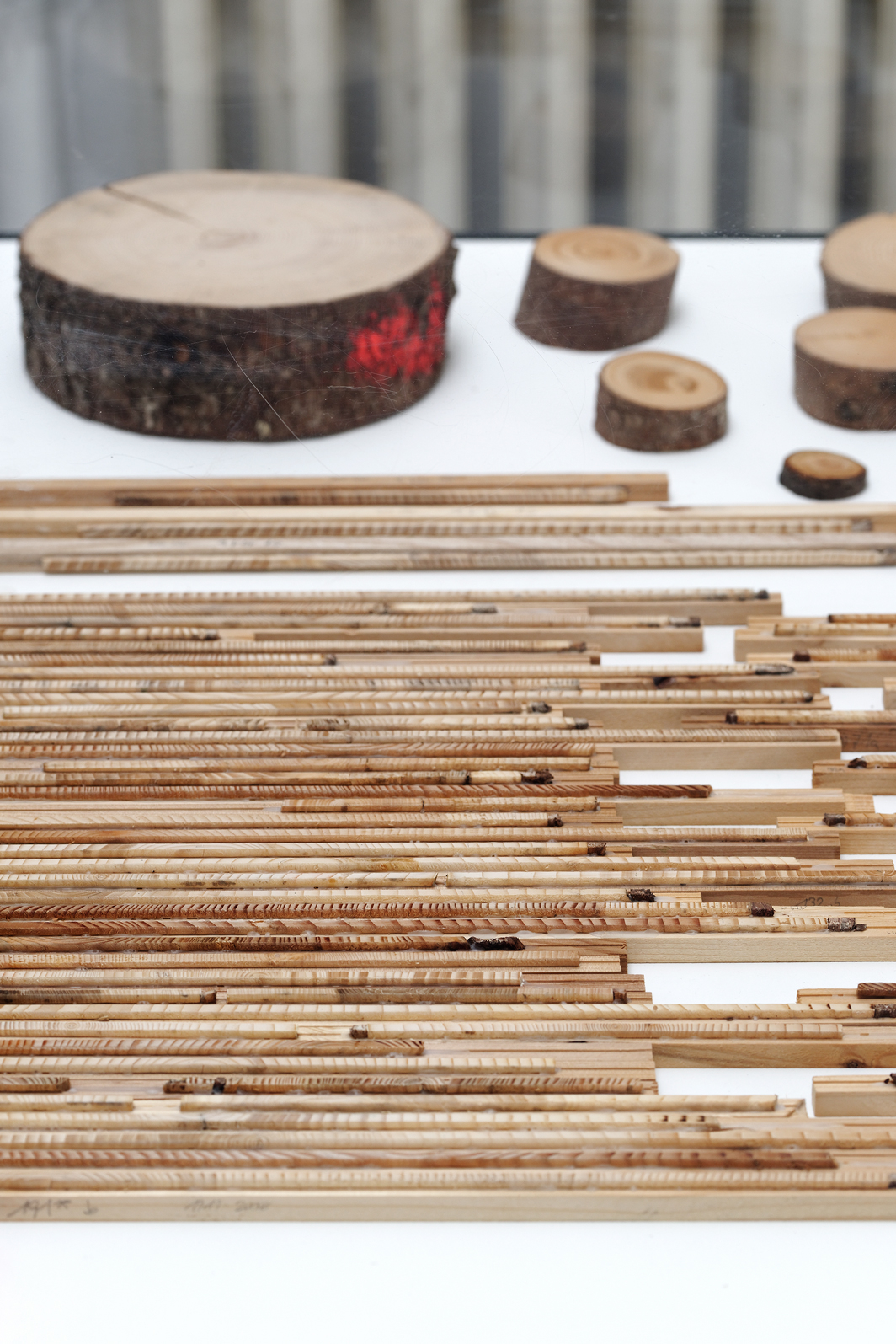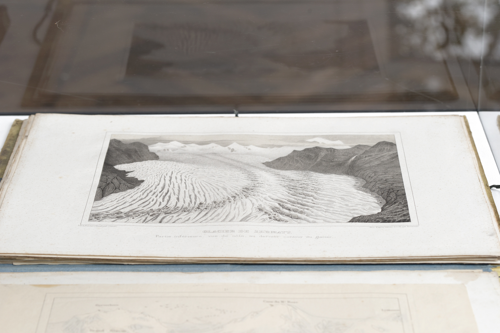 Marcher en montagne nous fait nous sentir insignifiants. La montagne l’emporte, elle s’impose. Toujours. Les volumes de roche, de glace et de végétation qui nous entourent, nous rappellent en notre for intérieur que nous faisons partie d’un tout insaisissable avec lequel nous devons établir un dialogue. Depuis ma prime enfance, on m’a appris à respecter la montagne, à l’écouter, l’observer et la comprendre. On finit par l’aimer sans jamais pouvoir lui faire pleinement confiance. Même dans un environnement comme celui des montagnes suisses, le contrôle du paysage est une illusion et la nature continue à dépasser la volonté humaine comme partout ailleurs sur la planète. Lorsqu’arrive l’avalanche, il n’y a aucun moyen d’éviter l’impact. Lors de ses randonnées, Kopelman accompagne divers scientifiques en tentant de comprendre ce paysage, de le décoder et d’apprendre son fonctionnement. Après avoir suivi, au cours de plusieurs expéditions, l’équipe du World Glacier Monitoring Service, et participé à l’Université d’été sur les « Mesures de bilan de masse et analyse en 2013 », Irene acquiert une vision approfondie des différents niveaux de compréhension des études sur les glaciers. Un des aspects qui la surprend le plus est le recours à des sources artistiques historiques comme outil permettant de reconstituer le comportement passé des glaciers, ce qui l’amène à s’intéresser aux dessins de Samuel Birmann (1793-1847), prêtant attention à ses systèmes de représentation et incorporant même certaines caractéristiques de ceux-ci dans son propre processus artistique. – Tu vois cette matière qui s’accumule sur les bords du glacier ? On l’appelle « moraine » – commente le professeur Hans Oerlemans (spécialiste en glaciers, variation du niveau marin, météorologie dynamique et paléoclimatologie de l’Université d’Utrecht) lors d’une de leurs premières ascensions du Morteratschgletscher. Avec Oerlemans, elle apprend à lire les pierres et les roches que le glacier laisse à nu et qui révèlent comment ceux-ci celui-ci avancent et reculent. Les glaciers sont de grandes masses de glace qui se déplacent, de la neige compressée en mouvement, où seules les lois de la physique sont en jeu. – Qu’est-ce qui arrivera à ce paysage sur le plan géopolitique lorsque les glaciers disparaîtront, avant qu’aucun d’entre nous ne meure ? – avance Wilfried Haeberli (spécialiste en glaciologie, géomorphodynamique et géochronologie de l’Université de Zurich) au cours d’une de leurs conversations. La question n’est pas anodine, puisqu’un pays comme la Suisse tire la plus grande part de son énergie électrique de ses glaciers. Lire le paysage, le déchiffrer, comprendre l’histoire de sa forme est une langue en soi. Lisa Erdle et Alejandro Casteller, de l’Institut de recherche en neige et avalanche, prélèvent des carottes dans les troncs des arbres, afin d’étudier l’impact du climat sur le paysage. – Sais-tu que les arbres poussent toujours plus haut du fait du réchauffement planétaire ? – commente-t-elle à un moment de leur conversation. Normalement on ne trouve plus d’arbres au-delà de 2000 mètres d’altitude mais il semble que cette limite commence à varier.