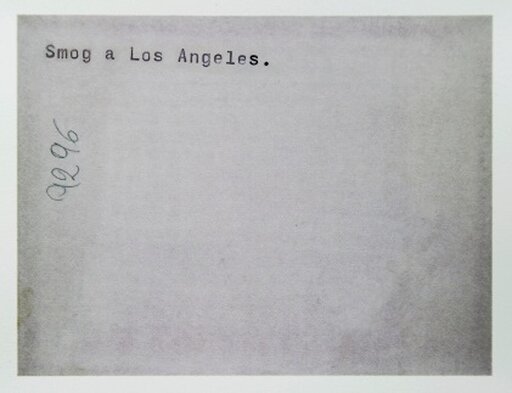 Before becoming the atmospheric title of this exhibition, Smog a Los Angeles was a jotting on the back of a photograph in one of the archives Elisabetta Benassi is building up: in all some 70,000 photos collected from major press agencies and national dailies like La Stampa and The New York Times. Here the paradigmatic events, locations and personages of the 20th century are thrown together with minor incidents and figures claimed by oblivion, but the documentary material gathered by the artist remains testimony to her problematic, equivocal vision of the events and ideologies it addresses. Firstly because Benassi shows us the backs of her chosen photographs: all the descriptions, captions, credits, stamps and notes that classify and inform the image, rather than the actual image itself, so what we observe and read sets us mentally reconstructing and recreating the missing visual. And because when she puts these documents back into circulation, the different modes of reproduction and presentation she comes up with endow them with a new materiality. Out of these archives objects emerge: installations, sculptures, films, microfilms, drawings. Meticulous watercolour copies, for example, provide an almost archaeological charting of each clue, inscription and rough patch on the paper, giving tangibility to the remains of now invisible plots. In Memorie di un Cieco a microfiche reader, the kind you used to find in libraries, lets you read the verso of the images as it jumps randomly back and forth in time. The artist is endlessly actualizing the past and putting together stories free of all chronology.