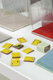 Three letters making up the title of an exhibition. Three interchangeable letters in action, that also make up a word. e a u, eau. French for water. And it's very much a question of water in this exhibition by Jarbas Lopes. Water is even there in person, sometimes descending the staircase. Sweeping away particles of exhibitions, humans, organisms, stories. Cleaning out the space and setting the art centre in movement, leaving it open to thinking as a group activity. Here Jarbas Lopes is a liana. He works together with the building. He is one with its thick walls, long corridors and high windows, with its inhabitants and its environment—with us. And we are many and varied. He thinks "with", loosens us up, tests our conductivity, elasticity and resistance. With a hand in every pie he weaves the craziest interrelationships. And if this weaving draws on one of his favourite technologies—one that has allowed humans to make nets and bags and other containers, and people to relocate and live on the move—it also looks like a metaphor for intertwined thinking, for muddle almost. Lopes thinks with his hands. He fabricates objects – elastic paintings, shock paintings, circular paintings, oracular paintings, experimental drawings, unstable "practicable" sculptures, books—which involve acts of speculation, gestures that set up an imaginario capable of welcoming utopia in any and every form. c