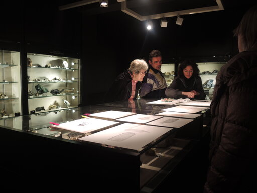 Cette résidence de Laetitia Legros, envisagée comme un terrain de recherche et de production collective, s’est déployée à partir de visites dans les musées de la région: le Musée sundgauvien à Altkirch, le Musée Théodore Deck à Guebwiller, le Musée de l’impression sur étoffes et le Musée minéralogique de la Société Industrielle, à Mulhouse. À la rencontre de leurs collections, les patient·e·s et les soignant·e·s ont accordé du temps à les observer, les dessiner, les mémoriser et les retranscrire. Les séances de dessins dans les musées, ainsi qu’à l’hôpital, ont permis de constituer un recueil d’images: objets, pierres, motifs, autant d’éléments qui, par le trait ou le tracé, tissent des récits empreints d’histoires et de perceptions. Ainsi les figures mettent en jeu une mémoire des formes, autant qu’une écriture. Elles activent un langage pictural qui interroge son archéologie, explore sa matérialité, de l’extraction de la couleur, minérale puis végétale, à l’histoire du tissage.