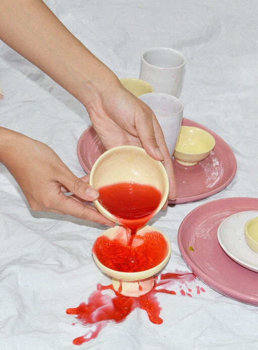 Envisagé comme terrain d’expérimentation, le Sundgau devient pour Giga Dinette le point de départ de réflexions autour de la pomme, fruit concentrant au cœur de sa chair des souvenirs d’enfance, des mythes et des contes. Lors de cette résidence, les artistes récoltent des végétaux et glanent des matières diverses qu’elles transforment en vaisselle, ustensile, sculpture ou monnaie. Ces cueillettes sont ponctuées de rencontres avec des artisan·es et des agriculteur·ices du territoire ainsi qu’avec une cheffe gastronome. La collecte de fruits, de matières et de savoir-faire artisanaux et culinaires prendra vie lors d'un banquet en fin de résidence, où un protocole de troc permettra aux personnes de déguster, discuter, s'interroger et rêver lors de ce temps de partage.