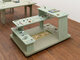 En longeant l’Ill, le Bureau de Troc Polymérique (B.T.P.) récolte des technofossiles: ces résidus de l’Anthropocène, traces d’un système consumériste obsolète. Ils sont ensuite disposés sur un mobilier aux allures de dispositif d’orpaillage bricolé, où ils s’apprêtent à être troqués par un fonctionnaire du B.T.P.—performé par Joshua Merchan Rodriguez. Choisis avec une égale tendresse, seuls quelques-uns ont été transmutés en or. L’échelle de valeur des objets est dès lors court-circuitée: est-ce la composition qui leur confère une préciosité, ou le temps que l’on consacre à retracer leur usage oublié? Plus loin, une carcasse en cuivre repose, échouée. Sa surface iridescente témoigne du passage du feu, révélant des couleurs endormies au creux de la matière. Guidé par un désir philosophal, le fonctionnaire poursuit ainsi sa recherche du chaudron rempli d’or au pied de l’arc-en-ciel.